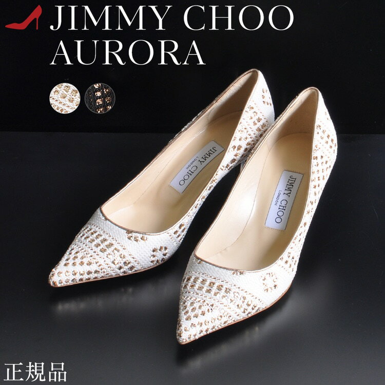 グリッター パンプス ジミーチュウ 靴 メッシュ 6cm 7cm ミドルヒール 結婚式 ポインテッドトゥ 黒 ブラック ゴールド ホワイト 白 ブランド 正規品 JIMMY CHOO AURORA オーロラ 痛くない ファブリック 23cm 23.5cm 24cm 24.5cm 25cm ジミーチュー