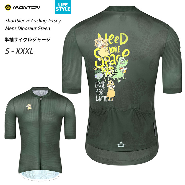 Monton[モントン]半袖サイクルジャージ[自転車用/メンズ]LIFESTYLE Dinosaur Green 恐竜 男性用ショートスリーブ 緑【店頭受取対応商品】