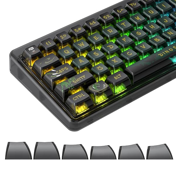 Ussixchare 120 キー ASA プロファイル PBT プリンキーキャップパンダキーキャップ昇華型カスタムキーキャップチェリー Gateron MX スイッチメカニカルゲーミングキーボード用(Dinosaur Green)高品質のPBT材料:耐久性のあるPBT材料から作られたASAプロファイルキーキャップは、耐久性が向上した優れたタイピングエクスペリエンスを提供します。 PBTは時間の経過とともに消えない長期にわたる鍵の文字をするので、摩耗や裂け目に別れを告げます。染色スミレーションプディングキーキャップ:各キーキャップは、昇華プロセスを使用して繊細に処理され、魅惑的な半透明の「プリン」効果を作成します。 プリンキーキャップの光拡散を強化し、魅惑的で没入型のバックライトエクスペリエンスを作成します。ASAプロファイル:ASAプロファイルで快適で人間工学に基づいたタイピングエクスペリエンスをお楽しみください。 キーキャップは、指の自然な曲率を補完する方法で彫刻され、長時間使用中の疲労を軽減します。さまざまなレイアウトの汎用性の高い互換性:これらのカスタムキーキャップは、61、68、82、84、87、96、98、および104キーのレイアウトをサポートする幅広いメカニカルキーボードに対応するように設計されています。 キーボードのサイズやレイアウトに関係なく、完璧なフィット感を体験して、優先セットアップとのシームレスな統合を確保します。恐竜をテーマにした黒と緑の美学: 恐竜をテーマにしたキーキャップの魅力的な世界に浸ってください。 これらのキーキャップは黒と緑の色を調和させて、キーボードに遊び心と洗練されたタッチを与えます。
