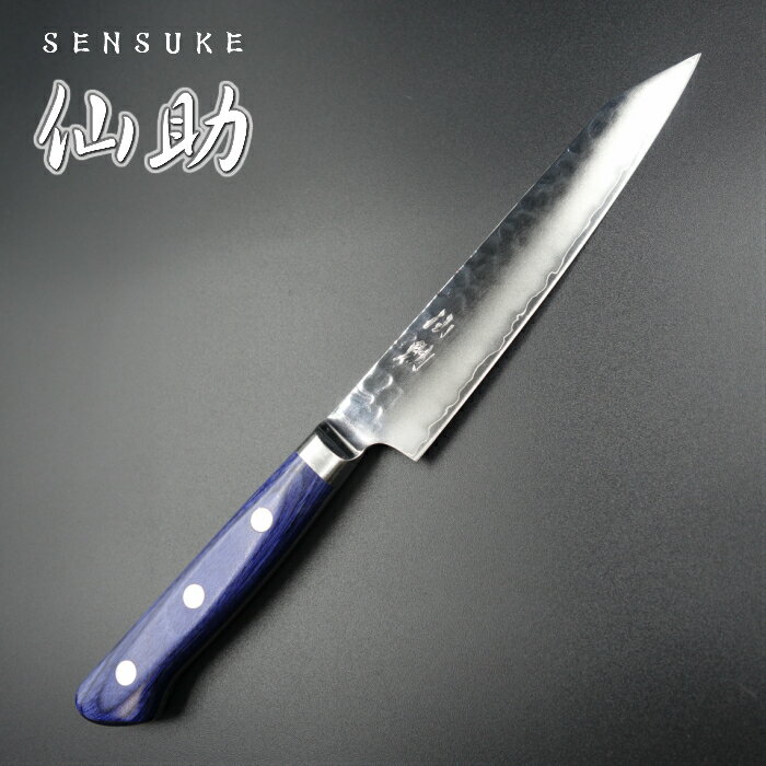 仙助 ペティ ナイフ おしゃれ ステンレス 包丁 両刃 15cm 日本製 大きめ 剣型 150mm aus10 鎚目 青合板柄 右利き 珍しい デザイン 使いやすい きれい 美しい 長持ち 耐久性 ギフト プレゼント さびにくい 果物 野菜 料理人 板前 料亭 和食 日本料理 高級 高品質 家庭