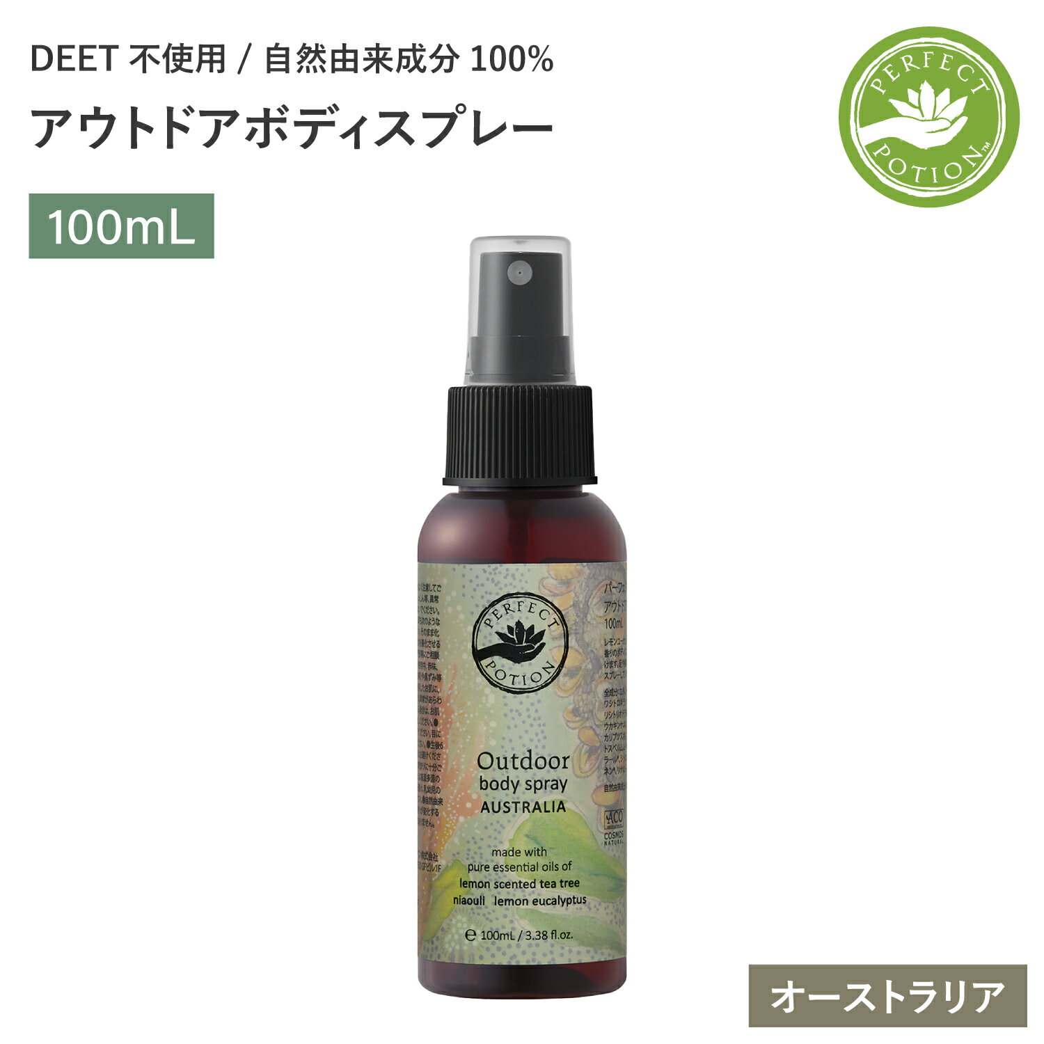 パーフェクトポーション アウトドアボディスプレー オーストラリア 100mL | PERFECT POTION アウトドアスプレー ボディスプレー アロマ 虫対策 虫よけ対策 自然由来成分 アロマ 子ども ベビー 敏感肌 アウトドア キャンプ お出かけ