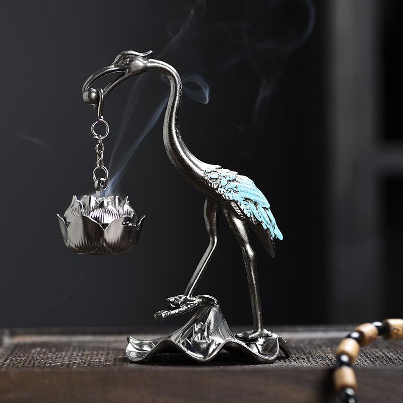 香炉 鶴 蓮 吊り香炉 合金製 室内用 家庭用 置物 仏具 茶道 禅風 お香立て アロマ香炉 古典的 インテリア小物 癒やし