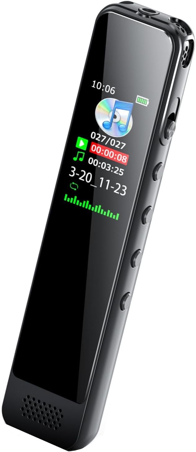【商品名】ボイスレコーダー 小型 ICレコーダー 長時間録音 32GB大容量 1536kbps音質 42時間連続使用 コンパクト 録音機 ワンボタン録音 液晶画面 ヴォイスレコーダー AVR録音対応 タイマー録音 変速再生可 リピート機能付 スピーカー内蔵 パスワード保護 ノイズキャンセリング機能 MP3プレーヤー機能 会話録音/インタビュー/会議/言語学習などに適用 日本語説明書付 【録りたい瞬間を逃さず・ワンボタン高音質録音】 ディテールにこだわり機能を重視したGillmarボイスレコーダーは遂に登場しました! 録音ボタンをスライドだけで録音をシンプルに開始・保存ができ、簡易な画面で録音情報が一目瞭然で、ICレコーダー裏面にボタン機能がきちんと書かれており、初心者でも直感で録音できます。 更に先端コアノイズ除去チップが内蔵され、最大限にノイズを減らし、周囲の雑音を拾わずクリアな録音が可能です。コンパクトなデザインにも関わらず、自動音声検知機能・ノイズキャンセリング機能など多彩な機能が搭載され、使い勝手抜群です。仕事や習い事、日常生活に幅広く活用できます。 【高品質録音・32GB大容量メモリー】 最高音質1536Kbpsでの録音に対応可能だけでなく、集音性能高い2つの高性能マイクを搭載し、先端コアノイズ除去チップに加え、7段階ノイズキャンセリング調節機能を搭載することで最大限に周囲の雑音を減らし、高品質の録音が実現できます。 ボイスレコーダー本体には32GBのメモリーが内蔵され、最大135時間の録音時を保存できます。高性能電池と省エネモード機能を搭載し、満充電の状態で最大42時間連続録音可能です。 【安心できるデータ保護機能】 データ保護機能が付いており、万が一電源が切れた場合は自動的に録音内容保存し、録音ファイルを紛失することに心配必要ありません。 【AVR録音・分割録音】 この録音機には声を狙い録りできる「AVR録音」を搭載し、録音中周囲の音の大きさによってボイスレコーダーは自動的に一時停止と録音再開することが可能です。ファイル中無駄な無声部分を削減することができ、容量スペースが節約されます。 また、長時間の録音ファイルの保存と管理は不便になるため、分割録音機能も搭載しています。分割録音の時間を設定しておくと、録音時に自動的に分割して保存され、後で簡単に管理することができます。 【タイマー録音】 録音音をタイムリーに確認して、ノイズキャン設定やマイク感度を調整することができます。 タイマー録音機能もついていますので、指定の時間に録音することが可能です。ご注意:タイマー録音中は自動分割録音の設定は無効になります。 【倍速再生・リピート再生機能】 習い事や単語暗記など、語学学習でボイスレコーダーを使うときは、「リピート機能」や「速度調整機能」が重要です。弊社のボイスレコーダーは倍速再生機能が搭載し、「-8」倍速から「+8」倍速の間で調整可能、お好みの速度で録音を確認できます。 更に再生中のファイルの任意2箇所を指定するとその区間をリピート再生可能で、大事な箇所は繰り返し聞くことができるため、重要事項を漏らすことなく、短時間で新しい業務や知識を把握することができます。 【パスワード保護・日付け記録】 大切な録音ファイルの漏えいを未然に防ぐために、6桁のパスワード設置可能、データをしっかり保護できます。録音された日付、時刻、ファイル形式などが録音ファイル名になりますので、録音後のファイル管理は一目瞭然です。付属のType-Cケーブルでパソコンと接続すれば、録音データと音楽ファイルをパソコンへ移動・整理・削除できます。 【音楽プレーヤーとして活用】 WAV、MP3など多種の音楽形式を再生可能で、ボイスレコーダー以外にMP3プレイヤーとしても楽しめます。