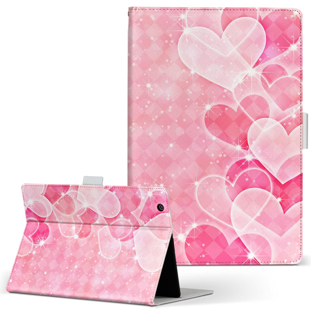 HUAWEI MediaPad M5 Pro Wi-Fiモデル CMR-W19 Lサイズ 手帳型 タブレットケース カバー 全機種対応有り レザー フリップ ダイアリー 二つ折り 革 006001 ハート ピンク