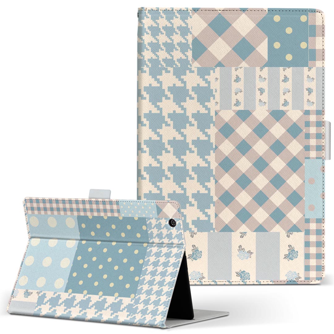 HUAWEI MediaPad M5 Pro Wi-Fiモデル CMR-W19 Lサイズ 手帳型 タブレットケース カバー 全機種対応有り レザー フリップ ダイアリー 二つ折り 革 008635 模様 チェック 水色 水玉
