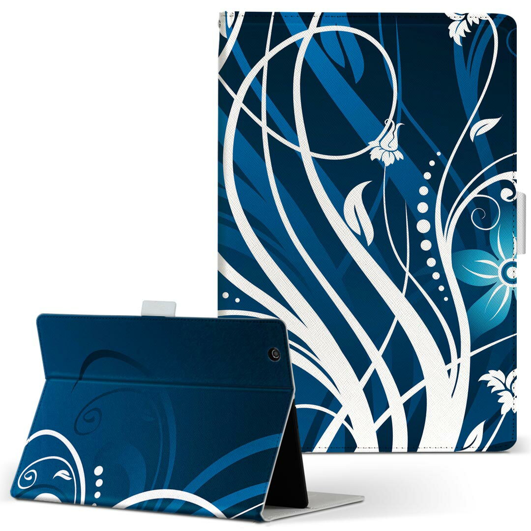 HUAWEI MediaPad M5 Pro Wi-Fiモデル CMR-W19 Lサイズ 手帳型 タブレットケース カバー 全機種対応有り レザー フリップ ダイアリー 二つ折り 革 008950 花 ブルー 青