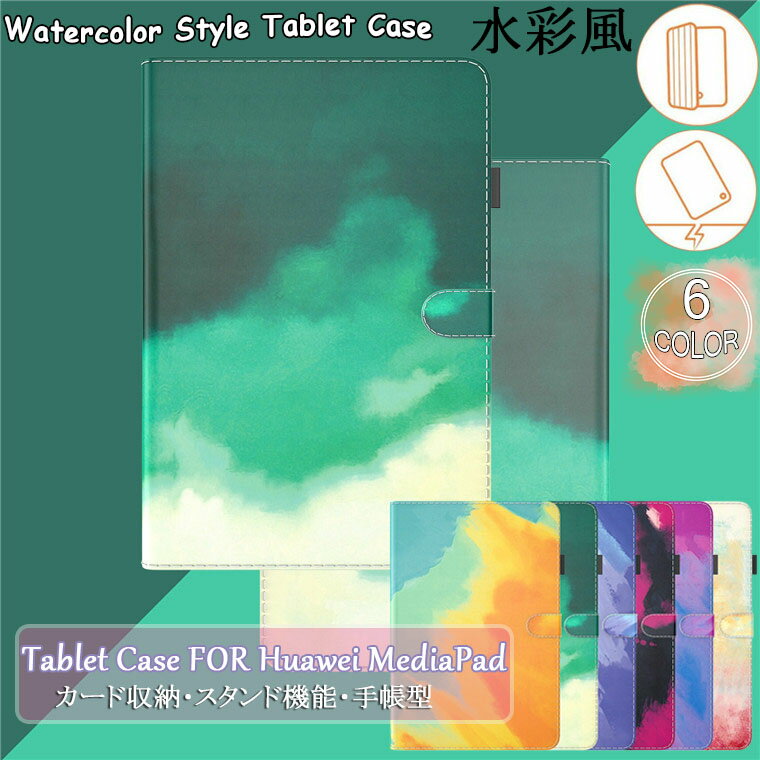 Huawei MediaPad M5 Lite ケース 10.1インチ ファーウェイ メディアパッド M5 ライト10.1 LTEモデル BAH2-L09 WIFIモデル BAH2-W19 対応 ケース カバー スタンド タッチペン収納 タブレットケース カバー 手帳型 水彩風 綺麗 PUレザー tpu 可愛い カード収納 おしゃれ 軽量