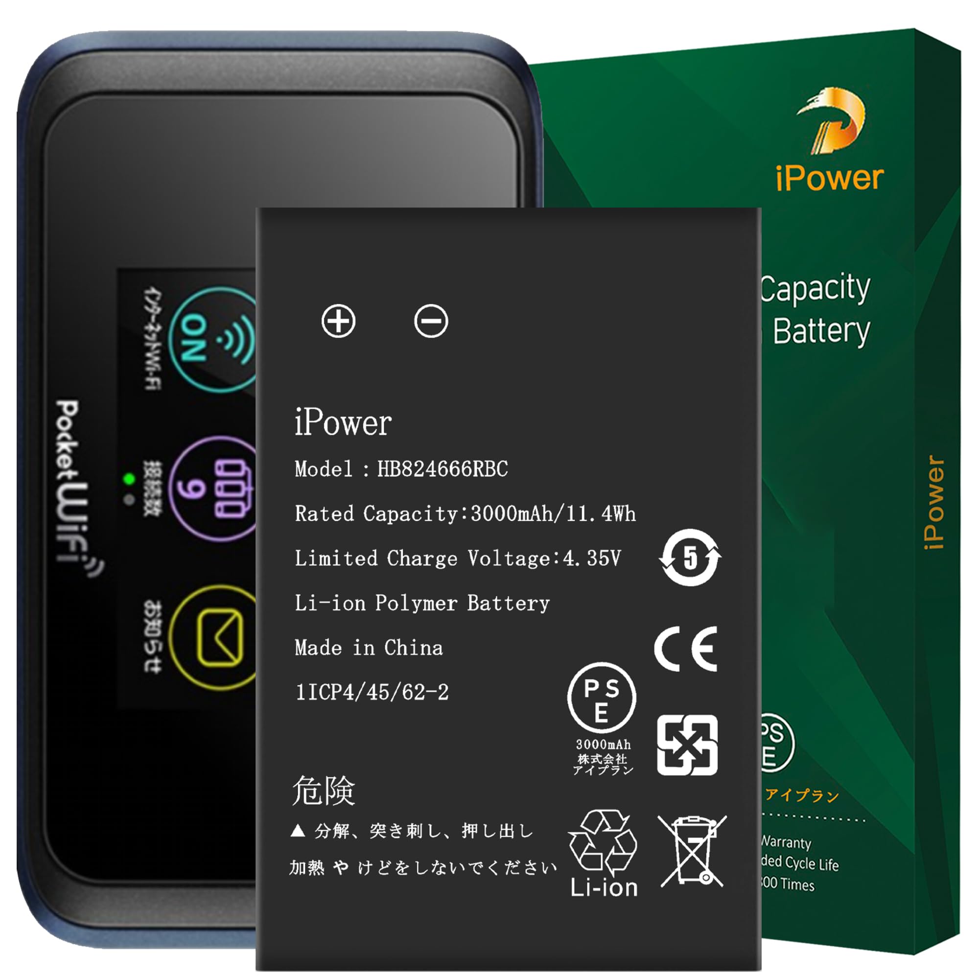 iPower for Softbank Pocket WiFi 501HW バッテリー 互換 交換 容量3000mAh 3.8V 汎用HB824666RBC電池 PSE認証 対応Pocket WiFi 502HW/504HW/505HW、HuaWei E5577/E5577s-321/E5577S等機種 対応HWBBJ1/HWBBK1/HWBBN1電池【No Tools】