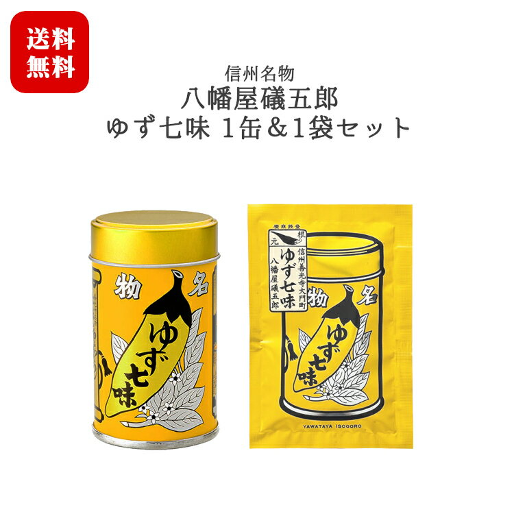 八幡屋礒五郎 ゆず七味 1缶・1袋セット[12g缶×1缶・15g×1袋] / 長野 信州 名物 善光寺門前土産 柚子 ゆず入り七味唐辛子 送料無料【日時指定不可】