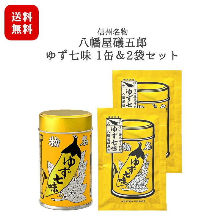 八幡屋礒五郎 ゆず七味 1缶・2袋セット[12g缶×1缶・15g×2袋] / 長野 信州 名物 善光寺門前土産 柚子 ゆず入り七味唐辛子 送料無料【日時指定不可】