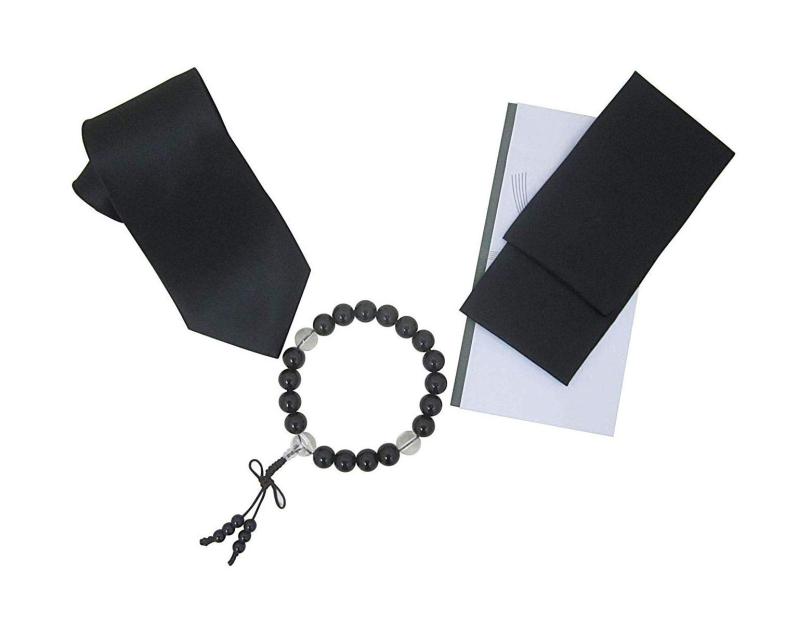 [FORMAL] 高級礼装 葬祭 数珠セット フォーマル4点セット ブラックネクタイ 喪章 香典袋フォーマル礼装に対応した小物セット。揃えておけばあわてない葬祭セット。【素材】ネクタイ:ポリエステル100%【サイズ】ネクタイ(全長):約144cm(物により若干長さの違いがあります)剣幅:約8cm数珠(腕周り):約24cm 重さ:約70g 喪章:幅約7cm×長さ44cm すべての宗派で使えます。お葬式やお通夜のブラックフォーマル葬祭セット。葬祭専用デザインで、ご出席頂けます。弔問の際に必要なアイテムが揃っております。お葬式や御通夜、突然訪れることがありますよね。いざと言うときのために、喪服と一緒に準備しておくと便利です。男性用の念珠は、葬儀、法事、お通夜、お墓参りにてお使い頂ける数珠でございます。