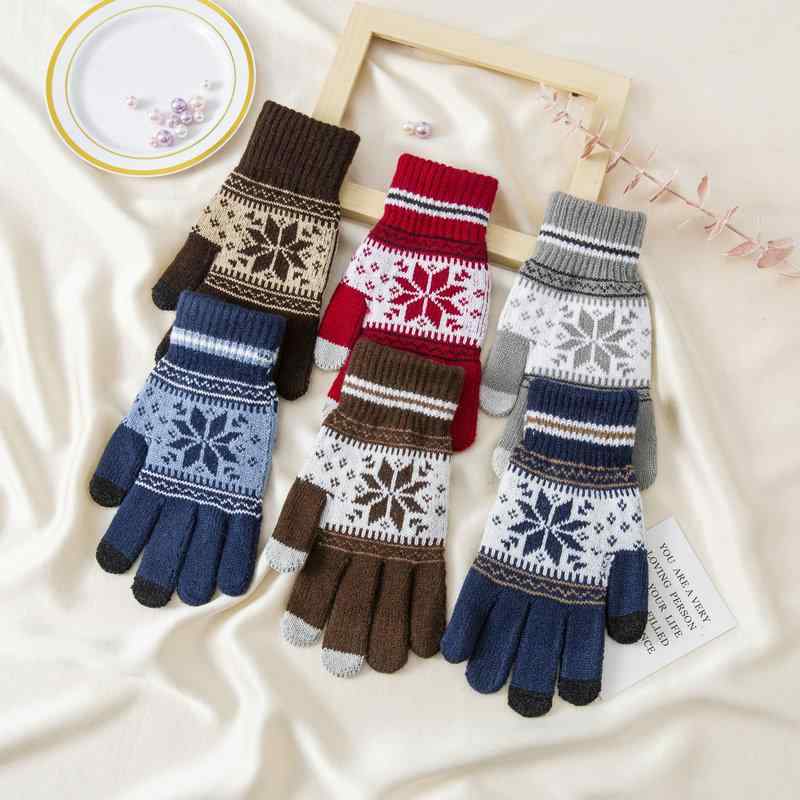 手袋 男女兼用 ニット ウール ポリエステル 保温 防寒 スマホ対応 グローブ アウトドア サイクリング 雪柄 シンプル カジュアル 韓国風 冬 普段使い 通勤通学 多色展開