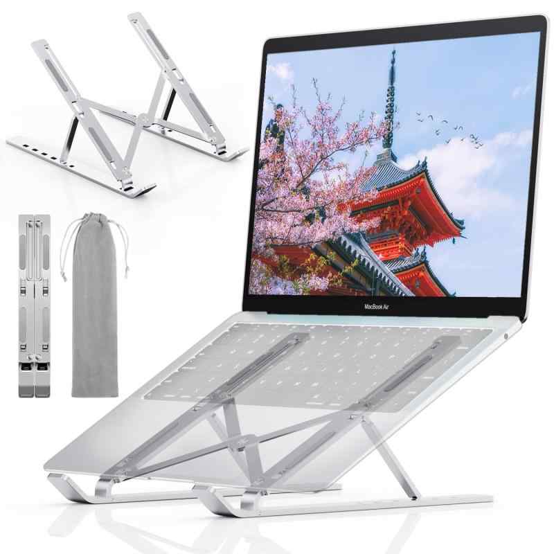 ZEEKK ノートパソコンスタンド PCスタンド アルミ合金 タブレットスタンド 折りたたみ 軽量 安定 放熱 滑り止め 人間工学設計 高さ 角度6段階調整 収納可能 在宅/出勤勤務 持ち運びに便利 10.5-
