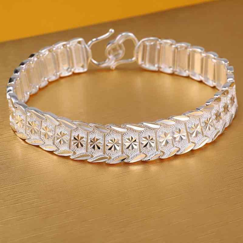 ブレスレット バングル オシャレ S 990 スター リング シルバー メンズ ブレスレット 銀 威圧的 幅広の 時計 チェーン シルバージュエリー ボーイフレンドへの ギフト