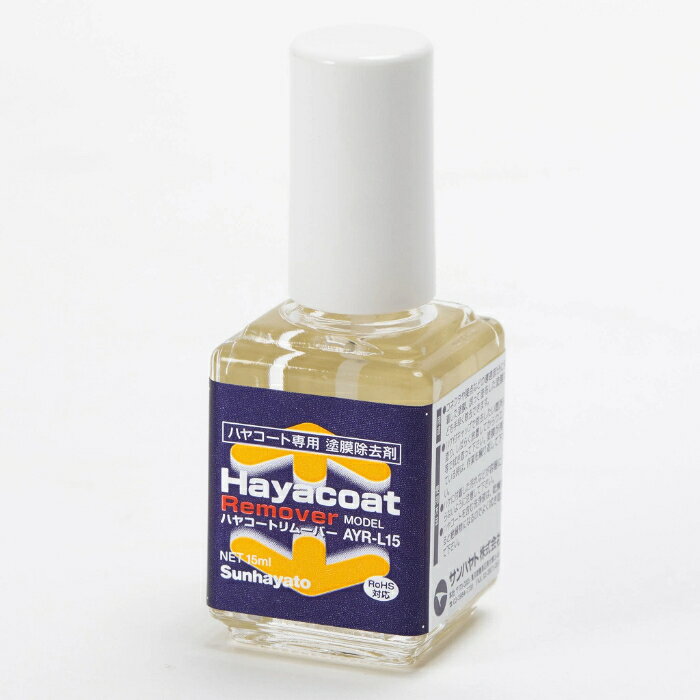 ★特徴★ ・ハヤコート再塗布時の古い塗膜除去に ・すでに塗布されているハヤコートの塗膜を手早く除去できます ・部品交換時や誤って塗布した箇所の塗膜除去に最適です ★仕様★ ・主成分:アルコール ・外観:無色透明液体 ・NET:15ml