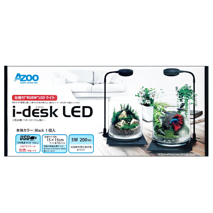 【本体カラー:ブラック】アズー アイデスク ブラック AJ20821 照明器具 RGBW LEDライト 小型水槽 ベタ コケリウム 台座付き AZOO i-desk