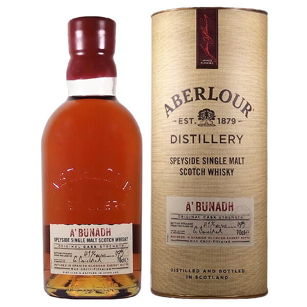 ”アブナック”とは"起源"という意味 ノンヴィンテージのカスク・ストレングスで、特別に厳選したシェリー樽を低温フィルターを使わずにボトリングしたものです。 アルコール度数:60.8% 容量:700ml スペイサイドモルト