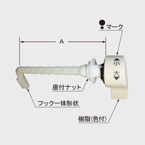 LIXIL・INAX タンク修理部品(レバーハンドル) トイレ便器洗浄ハンドル(ナット付) トイレ部品 [TF-Z180A/BN8] 見分けのポイント 1.ハンドル:樹脂(色付) 2.座付ナットあり 3.レバー:先端フック一体形状 販売時期:2013年〜 取付位置:側面(右) ハンドル表示:大小切替 A寸法:153.0mm 一般地、流動式のみ(寒冷地の水抜きタイプは不可) 【適合本体品番】 メッキなし、一般地、流動式のみ DT-5800BL、DT-5500BL、DT-Z150HU DT-Z150U DT-Z180HU DT-Z180U DT-ZA150 DT-ZA150AH DT-ZA150H DT-ZA180 DT-ZA180AH DT-ZA180H カラー:BN8(オフホワイト) 【適合本体品番を必ずご確認ください】部品ご購入の際には、お手持ちの本体品番と適合するか、必ずご確認をお願いいたします。同じ部品のように見えても、適合しない場合は取り付けできません。またお取り寄せ品のため、返品、交換もできませんので、必ず事前にお調べいただいてからご購入をお願いたします。【本体適合の調べ方】1.お手持ちの本体の取扱説明書を見る。2.商品名の適合品番にお手持ちの本体があるか、確認する。3.メーカーに確認する。4.弊社にお問い合わせいただく(2〜3営業日ほどお時間いただきます。本体品番をお知らせください)