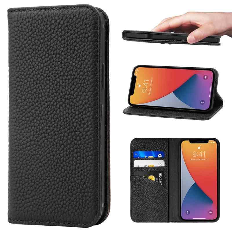iPhone 13 Pro ケース 本革 手帳型 カバー 耐衝撃 保護 カバー 本革 内蔵マグネッ 財布型 RFIDト 携帯カバー カードポケット スタンド機能 NanHou - ブラック【対応機種iPhone 13 Pro】カメラ穴等すべて機種に合わせてお作りします ご注文を確定前に、必ず再度お手持ちの機種と選択した機種をご確認ください。【本革】NanHouは、高級感のある上質な1層牛革を使用し、ライチ柄を採用しているため、手がより繊細で柔らかく、上品でファッショナブルに見えます。 ブラック、ブルー、グレーの3色をお選びいただけます。クラシックなオールマッチカラーとして、汚れに強く、時代遅れになることはありません。【素材と絶妙な仕上がり】高品質の1層牛革+ソフトTPU +内蔵の強力な磁石+ RFIDシールド素材、国際標準の縫製、カメラの穴の正確な開口部、革とTPUをより均一にフィットさせるNCマシン接着そしてしっかりと。【多機能スタイリッシュデザイン】(1)磁気吸引:ケースに磁気閉鎖装置があり、カードは磁気の影響を受けない。(2)ブラケット:完璧な視角、調整可能なスマートブラケット。(3)財布:スタイリッシュな3つのカードスロットと1つの現金スロットを内蔵する。【360度保護】:強力な磁気レザーカバー、自動接着。磨耗や傷からあなたの携帯電話を遠ざけるためにすべてのコーナーをカバーすることができるあなたの携帯電話のための完全度保護を提供します