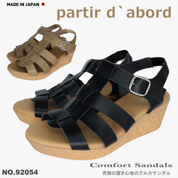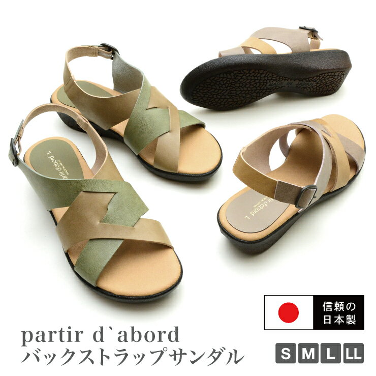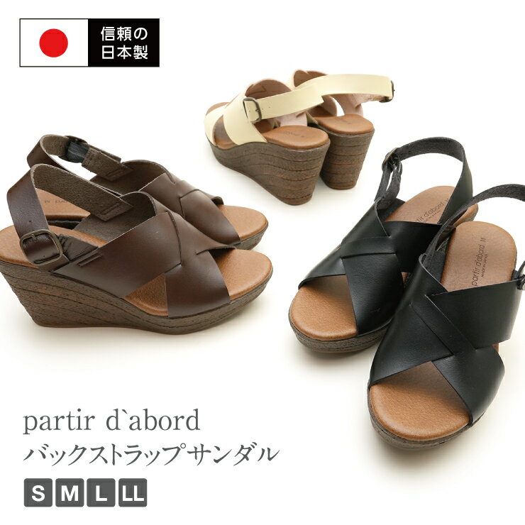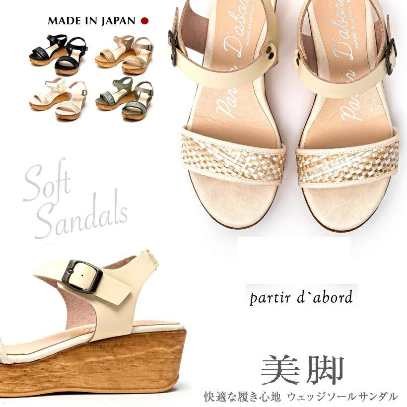 日本製 partir d`abord/パルティエダボール レディース 92858 国産 ウェッジソール サンダル 美脚 厚底 ミセス 靴 歩きやすい 疲れない 痛くない カジュアル コンフォート ストラップ おしゃれ 夏 サンダル オープントゥ バックストラップ