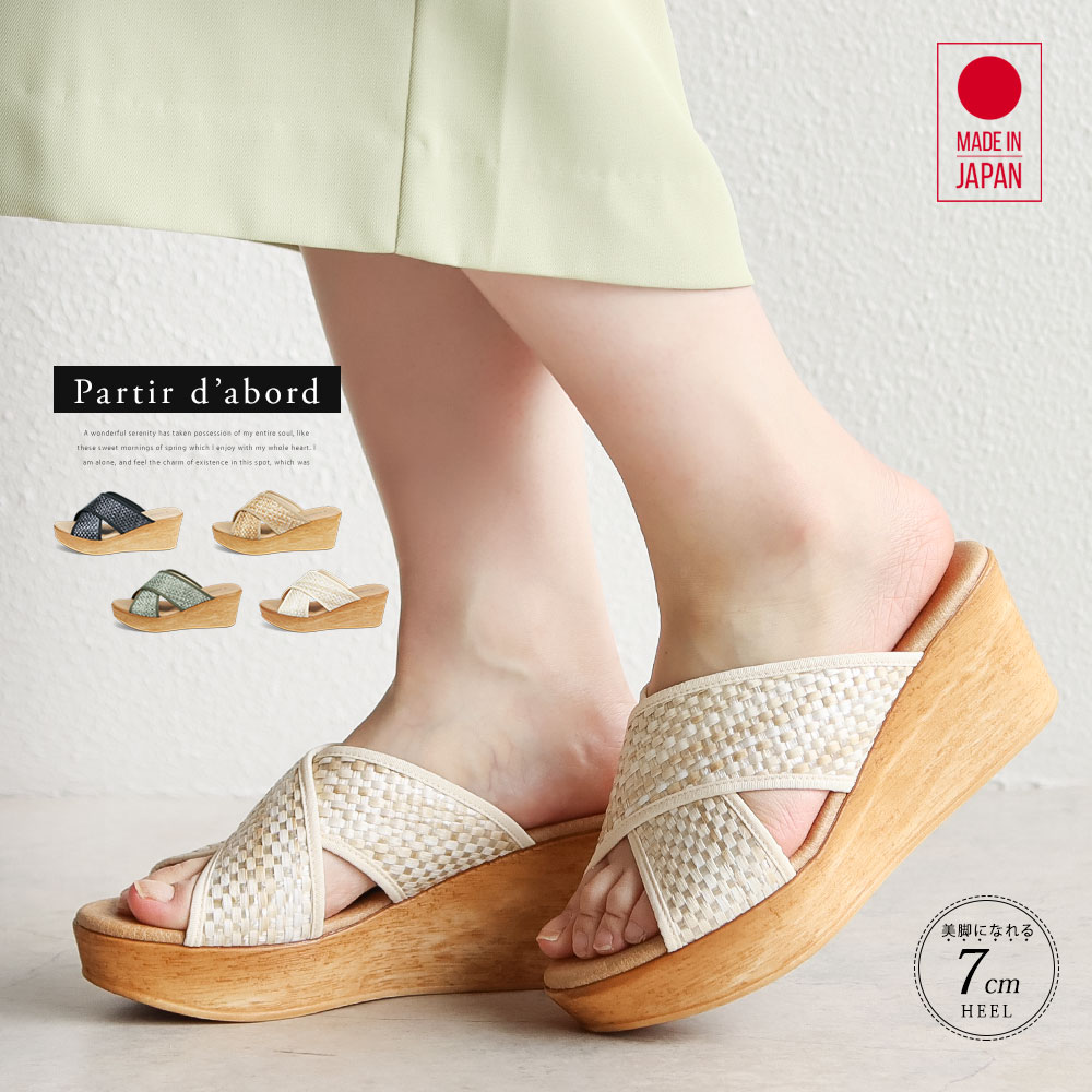 【15%OFFクーポン対象】【サンダル レディース ウェッジソール 疲れにくい 日本製 7cm 厚底 ウエッジソール 靴 レディースシューズ 婦人靴 日本製 痛くない カジュアル partir d'abord