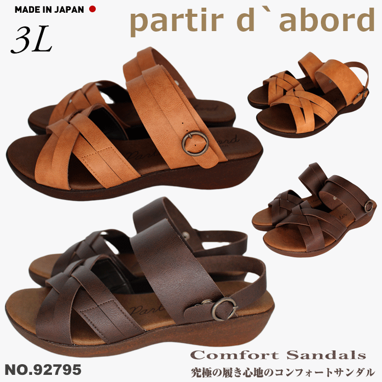 日本製 partir d`abord パルティエダボール レディース 92795 国産 ウェッジソール サンダル 美脚 厚底 ミセス 靴 歩きやすい 疲れない 痛くない カジュアル ストラップ おしゃれ サンダル オープントゥ バックストラップ 2way 3L 大きいサイズ 走れるサンダル