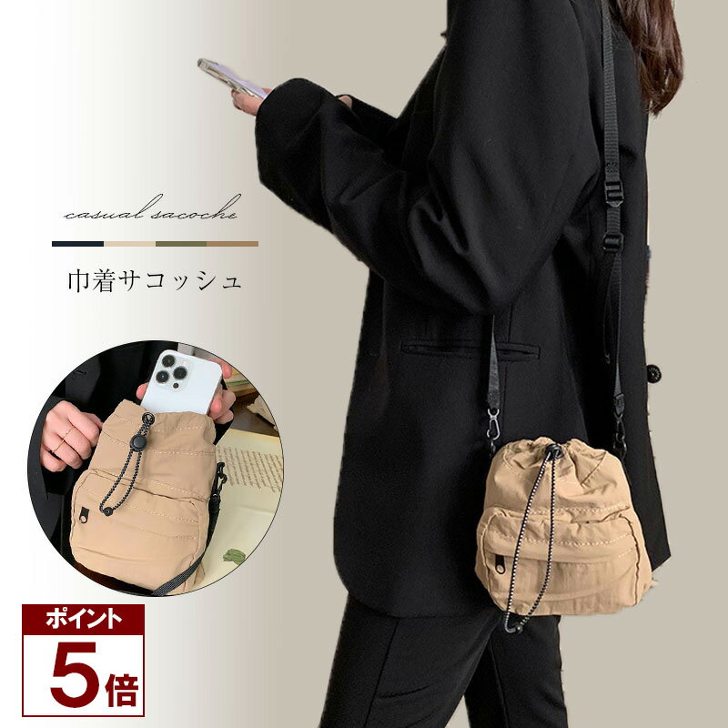 【ポイント5倍 BLACK FRIDAY】 ショルダーバッグ レディース 斜め掛け 大人 軽量 巾着 サコッシュ レディース 肩掛け バッグ ショルダー 小さめ ポーチ 巾着バッグ スマホポーチ ミニショルダー ミニバッグ 巾着ショルダー 軽い ナイ