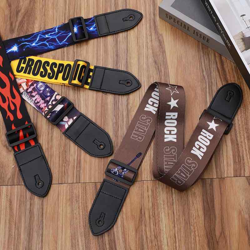 ギターストラップ 熱転写 カラフルプリント 厚手 ポリエステル製 長さ調整可能 アコースティックギター エレキギター用 ショルダーストラップ 肩掛け おしゃれ かわいい 個性派 多彩なデザイン 民族風 キャラクター柄 フラッグ柄