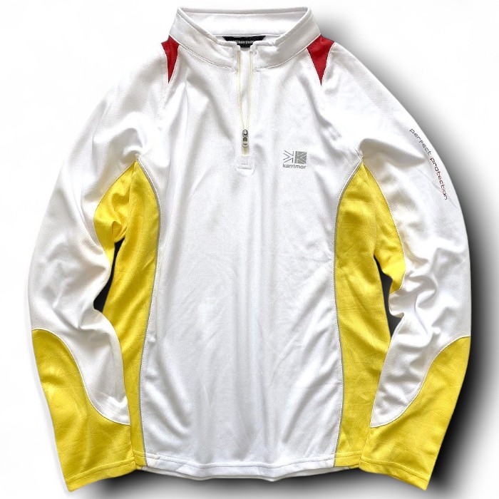【中古】【新古品・未使用品】Karrimor カリマー aerocool ハーフジップ プルオーバー 長袖 ストレッチシャツ ポロシャツ ウェア レディース 1KATSM202 ホワイト×イエロー 100 ▲010▼50822m08