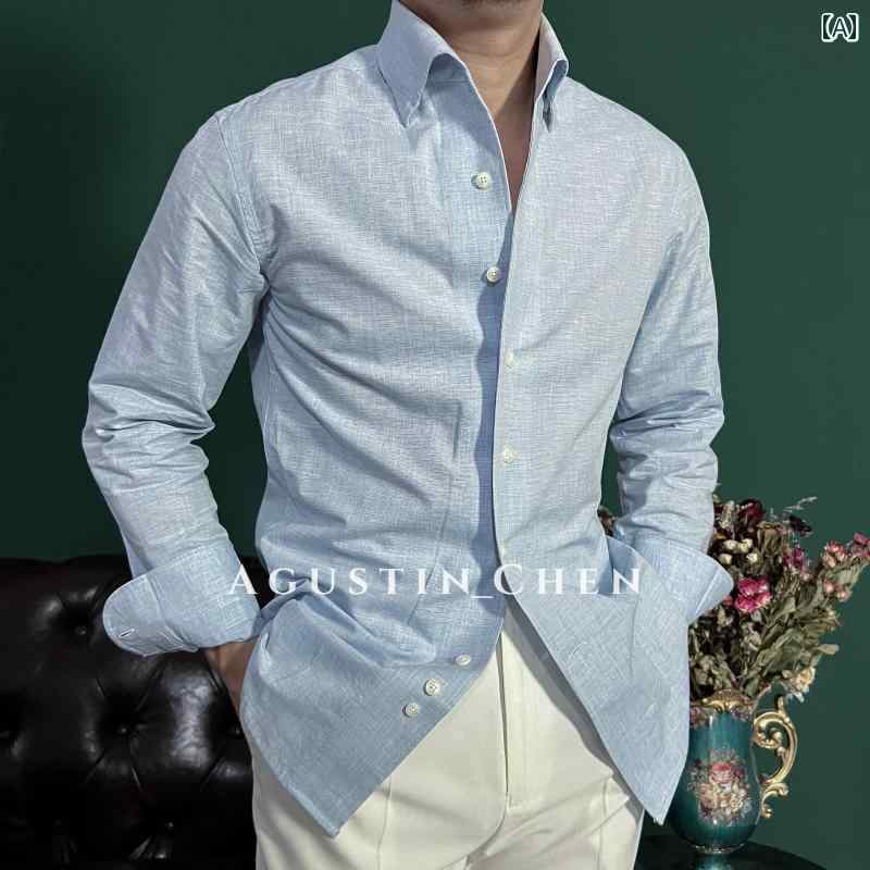 Agustin _ Chen イタリア製 リネン ワンピース カラー 夏 薄手 メンズシャツ スリム ファッション 長袖 シャツ