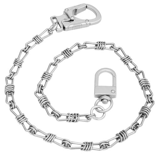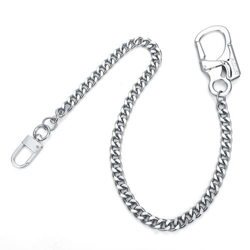 [Ahiller] メンズ財布 チェーン、タングステンスチール製シャープコーンカラビナ付きダブルロック機構付きキーチェーン、ジーンズチェーン、パンクスタイルのバイカー・ウォレットチェーン(シルバー-DK-1P)