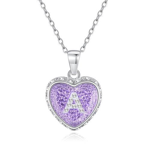 [Ahiller] ハートペンダント パープルネックレス|レター A 付き 女性用|クリスタル イニシャルチャーム ハート型|45+7cm 調節可能チェーン|ミニマリスト パーソナライズド ギフト 彼女・妻・母へ(レター A パープルネックレス)