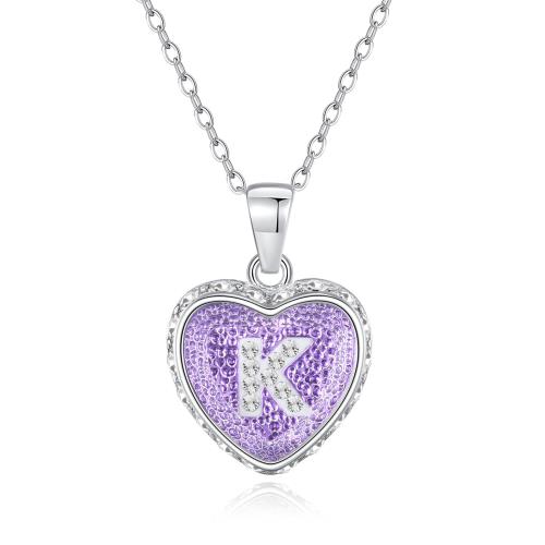 [Ahiller] ハート型アルファベットネックレス パープル レディース 長さ調整可能 ステンレス鋼 チェーン 45+7cm シンプル おしゃれ 誕生日プレゼント 母の日ギフト 女友達へ 妻へ 女性への贈り物(レター K パープルネックレス)