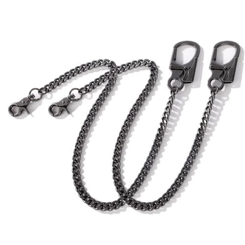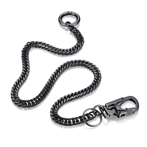[Ahiller] メンズウォレットチェーン60センチメートルブラックステンレススチールウォレットチェーンダブルロックカラビナクリップnラウンドクラスプ付 - 四角形 (YK-SFL-S1)