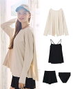 タンクトップキュロット3点セット 9M・11L デイリーシーンでも着用出来るユーティリティなセット水着です。 肌の露出を抑えながら、モード感のある立体的なシルエットはおしゃれにボディラインをカバーしてくれます。 程よいハリのあるナイロン素材を使用。 日焼け対策ができる1番基準の高いUPF50+の機能付きです。 2重構造のトップスは内側をボトムにINして着用出来るので、お腹や背中が出る事無く、快適な着心地! ブラ内側はカップがずれにくい工夫もしています。 セットのショートパンツは太ももをすっきり見せてくれる上品なフレア。 ウエストの紐は1周入っているので、フィット感の調整が可能です。 これ1つでコーディネートが決まる3点セットです。 お手入れしやすいので、デイリー使いもおすすめです。 水着ボトム部分 ウエスト 脇丈 股上 股下 裾回り 9Mキュロット 64cm 39.5cm 33cm 11cm 91cm 11Lキュロット 68cm 41cm 33.5cm 12cm 95cm 素材 カバーアップ/キュロット:ナイロン ポリウレタン ブラトップ/ショーツ:ポリエステル ポリウレタン ワイヤー × パッドポケット ○ 縫付けPAD × 肩ひもストラップ調節 × アンダー調節 × 肩ひもストラップ取外し × 紫外線防止 ○ 水濡れ ○ 水陸両用 ○ *サイズ表は、一般水着参考サイズになります。水着のデザイン・生地・製造メーカーによって多少の誤差がある可能性がございます。 サイズ・採寸方法はこちらをClick>> ★店舗へお問い合わせの場合は、商品番号/カラー/サイズ/ 商品の特徴をご確認のうえご連絡お願いします★