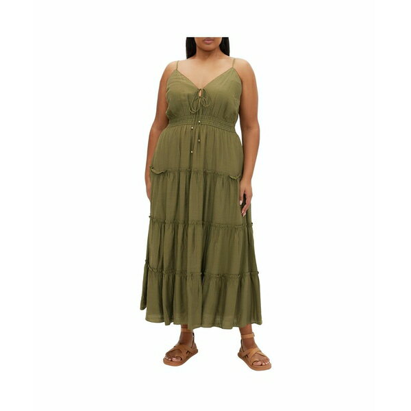 シティーシック レディース トップス ワンピース マキシワンピース プラスサイズ マキシ CITY CHIC Plus Size Aiza Maxi Dress Khaki カーキ