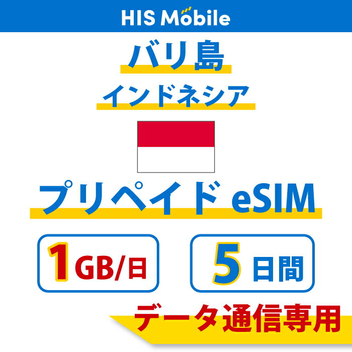 【送料無料】インドネシア バリ島 プリペイドeSIM 5日間 プリペイドeSIMカード 観光 海外 旅行 留学