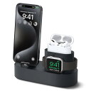 elago iPhone Apple Watch AirPods スタンド シリコン 充電スタンド 純正 ケーブル のみ 対応 充電ドック 卓上 クレードル ホルダー Charging Hub [ アイフォン アップルウォッチ エアーポッズ 各種 ] ブラック