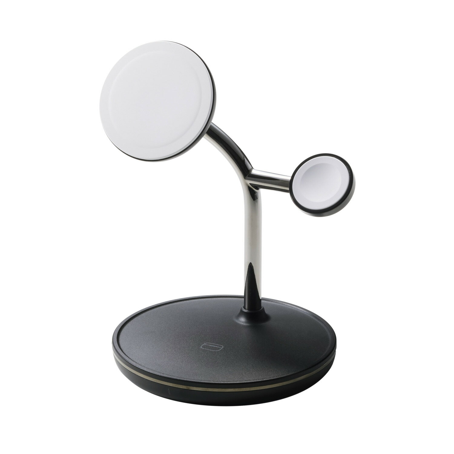MagSafe対応iPhoneシリーズをマグネットで固定し7.5Wで高速充電でき、同時にワイヤレス充電対応AirPodsシリーズを5Wで充電できるワイヤレス充電器です。 Apple Watch磁気充電ケーブルをはめ込むことでApple Watchも同時に充電が可能です。 ※本製品のワイヤレス充電出力はマグネット部7.5W、台座部5Wです。MagSafe規格15Wの充電には対応しません。 MagSafe対応iPhoneシリーズ、ワイヤレス充電対応AirPodsシリーズ、Apple Watchシリーズを3台まとめて同時に充電可能です。 Apple Watch磁気充電ケーブルはめ込むことができ、一体感のあるデザインを実現します。