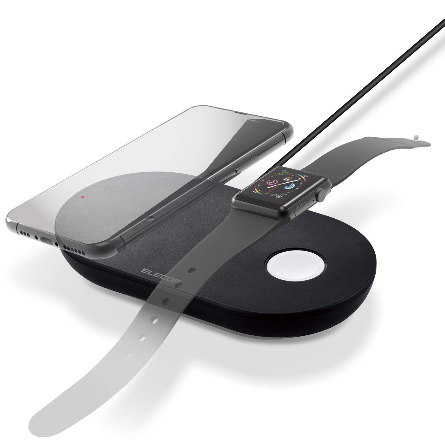 エレコム ワイヤレス充電器 Qi対応 5W Apple Watch 同時充電 iPhone/Android/AirPods/AppleWatch ブラック W-QA12BK