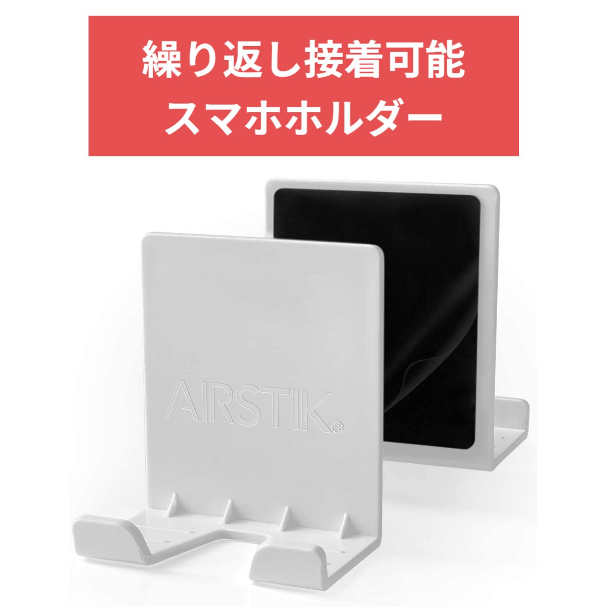 AIRSTIK 何度でも取り外せる スマホ 粘着ホルダー 傷や跡が残らない 簡単設置 iPhone iPad 全モデル対応 他メーカー対応 携帯 タブレット スタンド エアスティク ホワイト