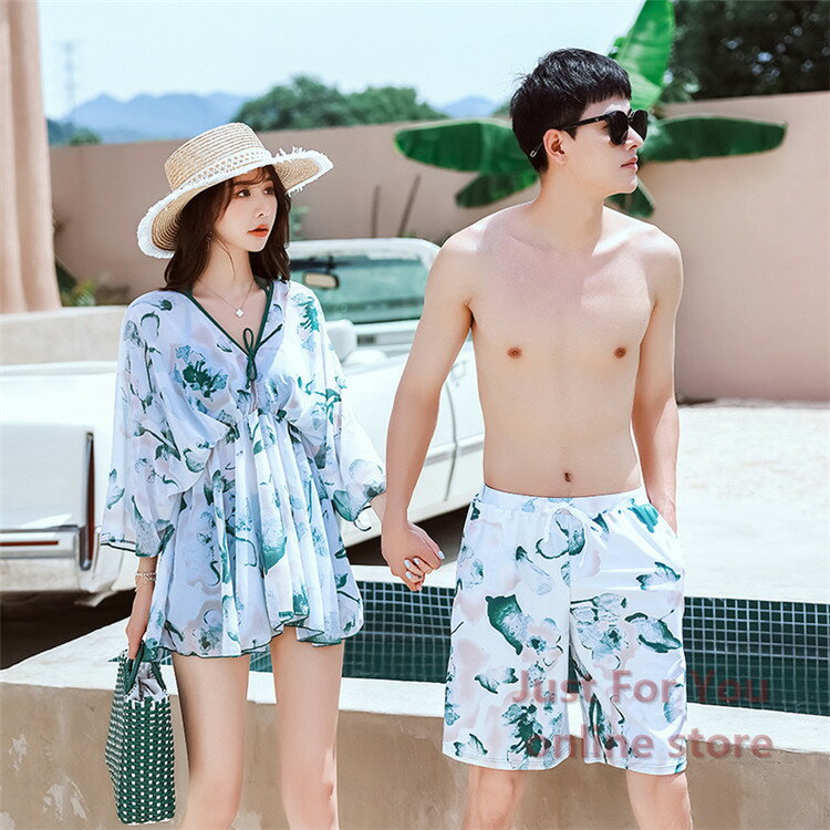 カップル 水着 レディース メンズ ペア水着 4点セット 女子ビキニ メンズ水着 男性 サーフパンツ 水着 可愛い レディース ビーチウェア 水着 体型カバー ラッシュガード プール 水着 韓国 水着 ペア 海外旅行 新婚旅行 お祝い プレゼント 夏