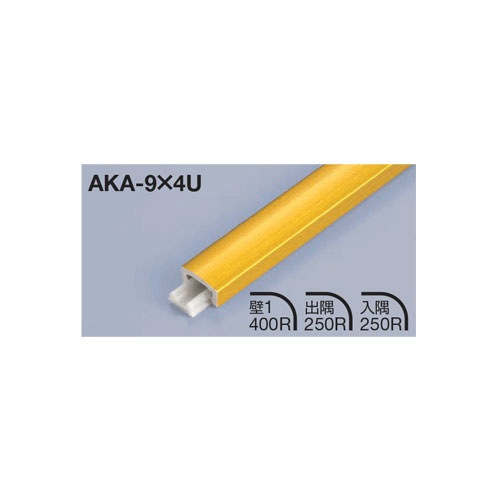 メタカラー建材 見切材かん合タイプ ラウンドR型 AKA-9X4U + AK-9X4UP 下地セット L3000 ゴールド(G)
