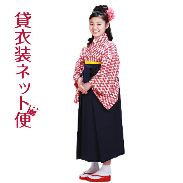 ※髪飾り・帯飾りはセットに含まれておりません。 【卒業式はかまレンタル】 <はかま> ○色:紺色 ○素材:ウール100%またはポリエステル <着 物> ○色/柄:赤色 矢絣柄 ○素材:ポリエステル ◆身長:135cm〜160cm位 ※ブーツ着用時140cm〜165cm ◆ヒップサイズ:75cm〜100cm位 ※下帯は、おまかせになります。 -------------------------------------------- サイズなどについて詳しくは「貸衣装ネット便」までお気軽にお問い合わせ下さい。 ●TEL:06-4307-3737 ●メール:kashiisyou-nb@bbhamada.com ※お着物に使用している「小物類」は、撮影用です。 実際にお届けする小物類はコーディネーターがお着物にあわせてお見立ていたします。 ご希望がある場合はご遠慮なくお申し付けくださいませ。 髪飾り販売はこちら