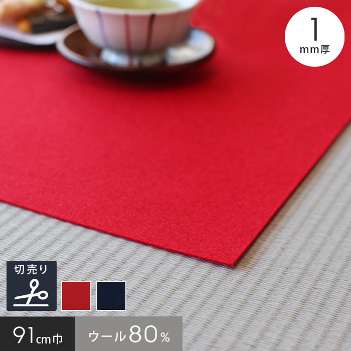 【パンチカーペット】【あかね毛氈】【1mm厚】混紡 91cm巾【切売】*AKA KON__91-konbou-1mm-
