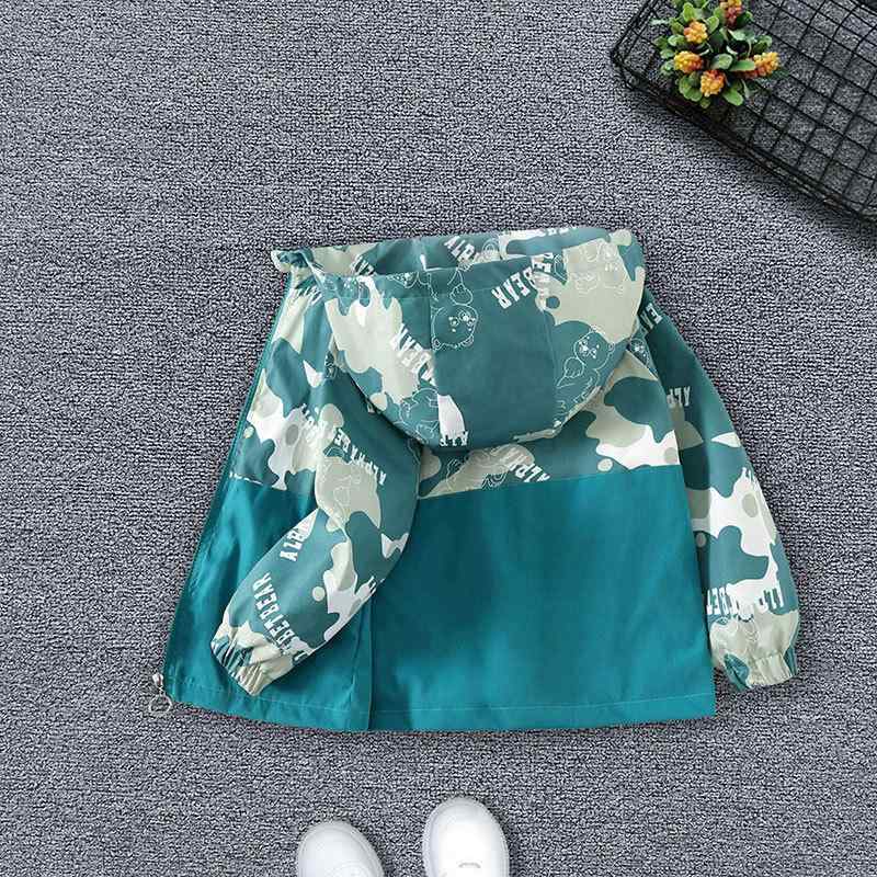 キッズ ジャケット 男の子 アウター 迷彩柄 フード付き ジャンパー 春秋 8歳以上 普段使い ショート丈 ポリエステル ブルー グリーン