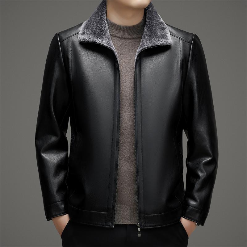 ジャケット 男性用 PUレザー 裏起毛 厚手 冬物 紳士服 アウター コーヒー色 ブラック