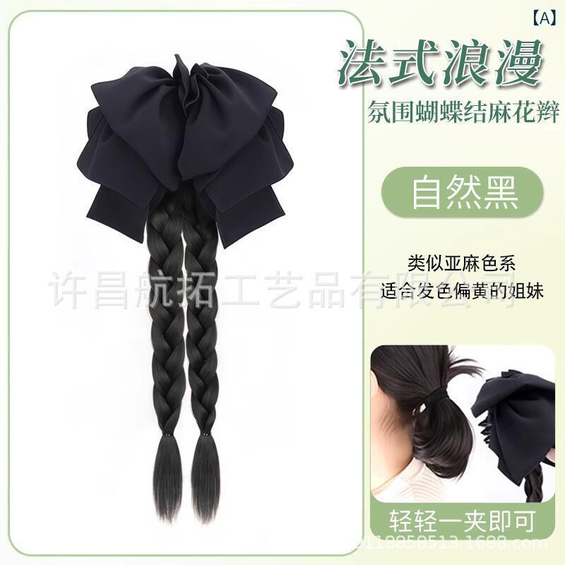 ウィッグ レディース ポニーテール フランス風 ロマンチック 黒ベルベット リボン 編み込み エクステ 高温耐熱ファイバー 自然な色