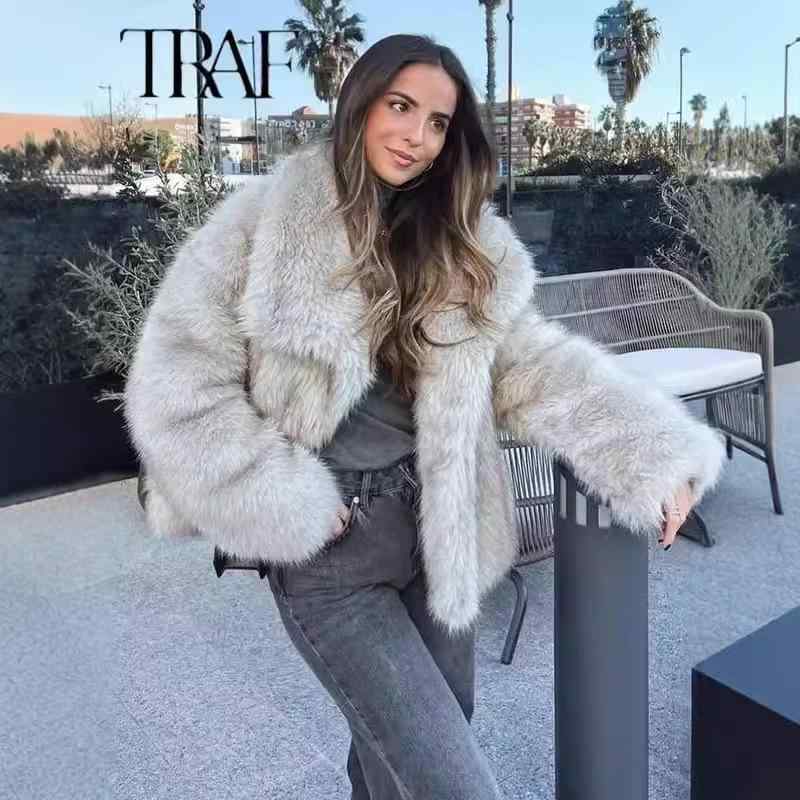 ジャケット レディース フェイクファー ゆったり 長袖 コート アウター 象牙色 グレー ベージュ 黒 コーヒー色 ピンク 水色 ワインレッド XS S M L XL 2XL 欧米風 ストリート