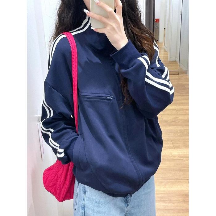 ジャケット レディース スタジアムジャンパー 春秋 ゆったり レトロ 野球服 スウェット 立襟 ブルゾン トップス グレー 紺色